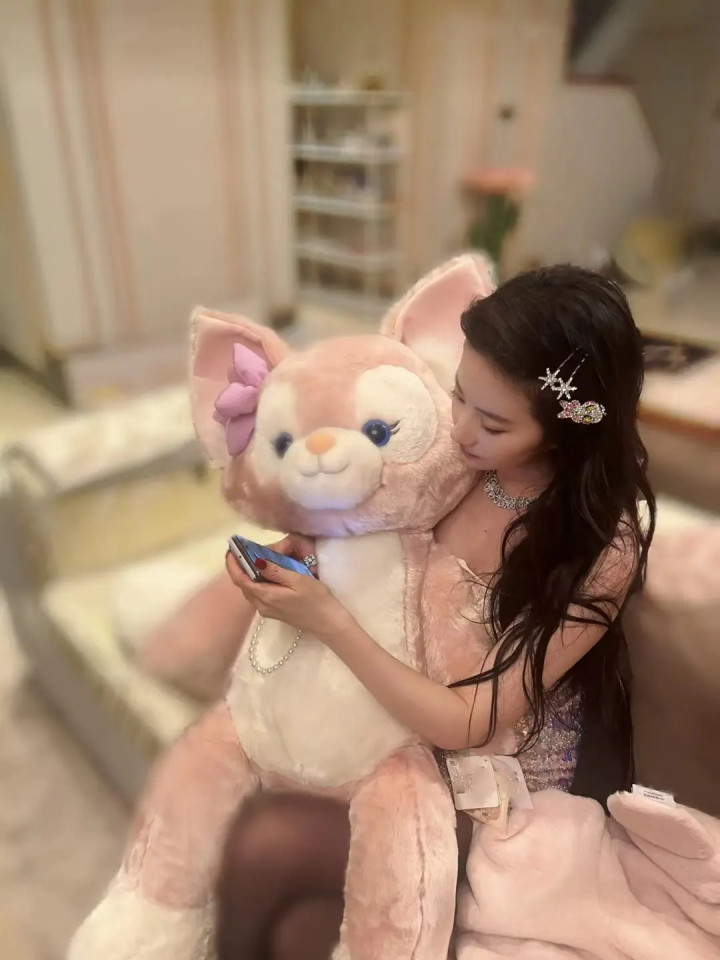 刘亦菲抱大号玲娜贝儿 亦菲下次去迪士尼再抱个超大号哦...