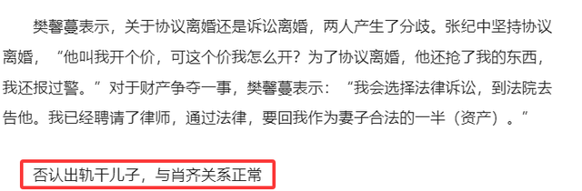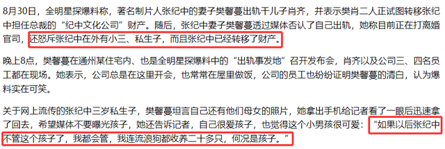 而张纪中则回应称是樊馨蔓出轨自己的干儿子,双方各执一词,互不相让。