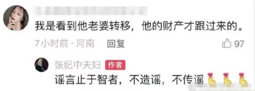 面对此类传闻,张纪中曾回应“谣言止于智者”,且晒出与妻子杜星霖一起练剑的视频,试图以此来证明他们之间的感情。