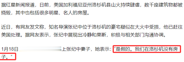 面对此传闻,1月18日,杜星霖作出回应:“此为假消息,我们在洛杉矶并无房产。”